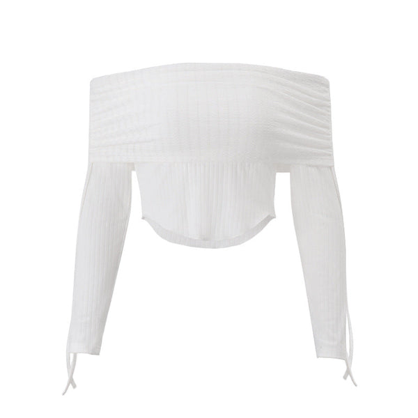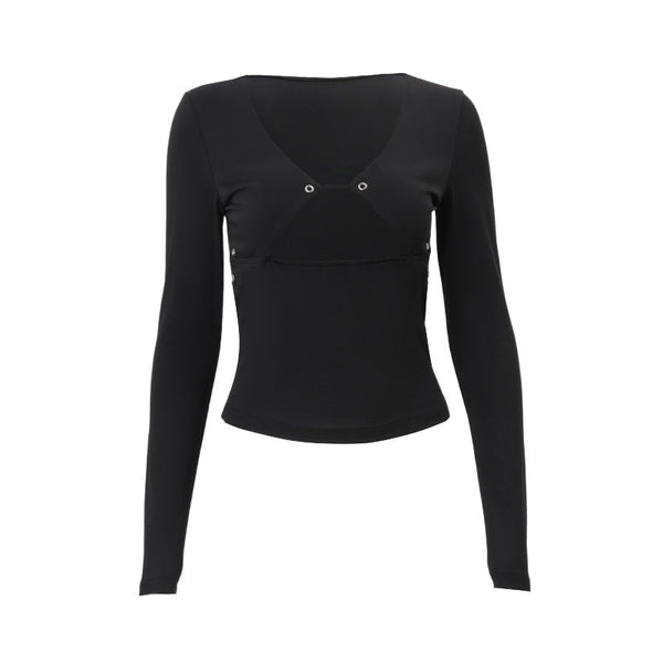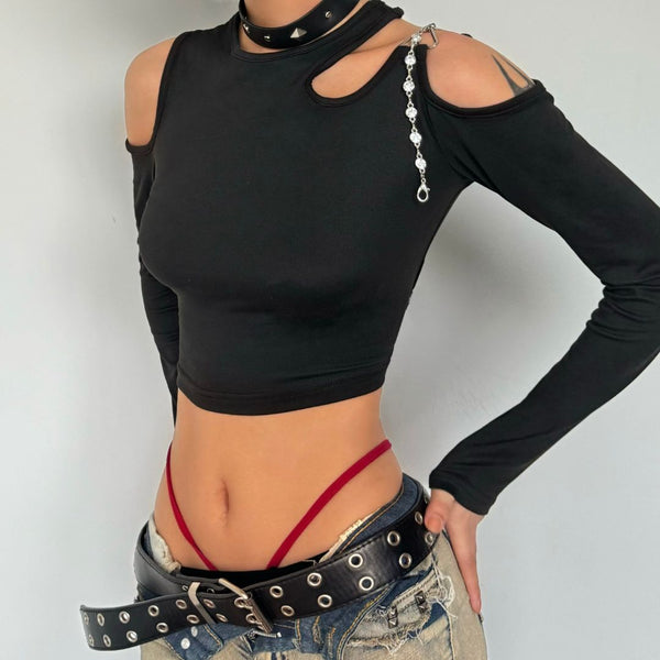 Top corto liso con cuello redondo y cadena de metal con hombros descubiertos y manga larga gótico Moda Darkwave alternativa gótica Moda Darkwave emo