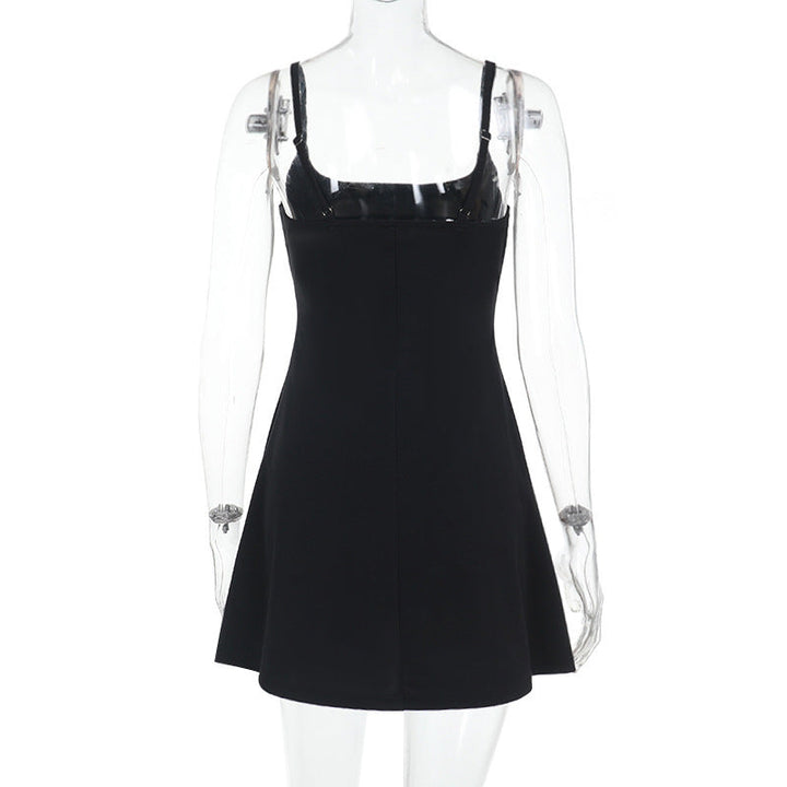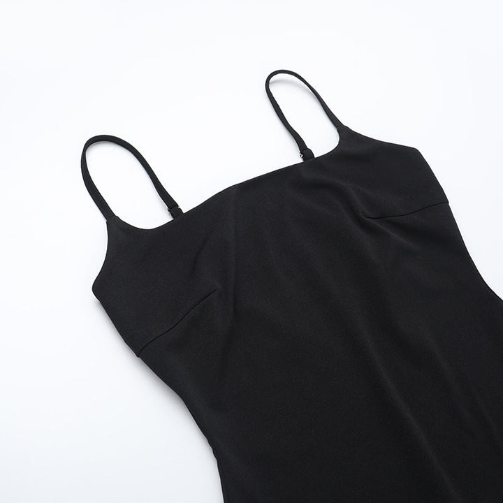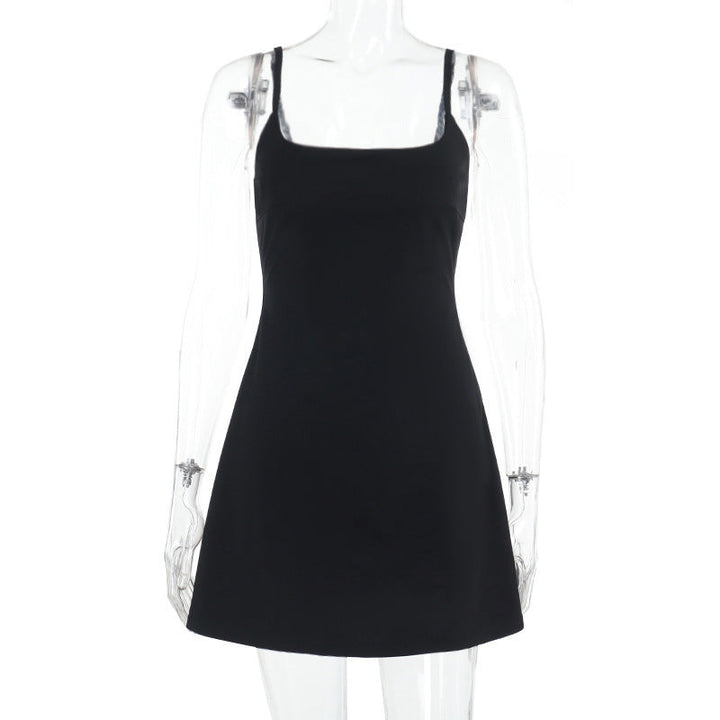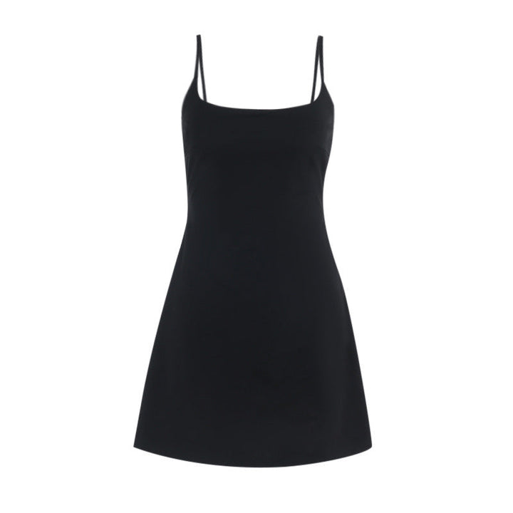 U neck solid backless cami mini dress
