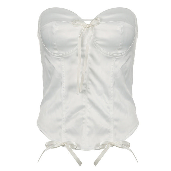 Bowknot sweetheart neck satin self tie tube top