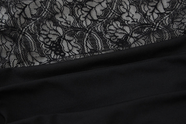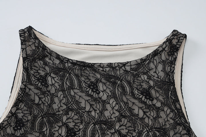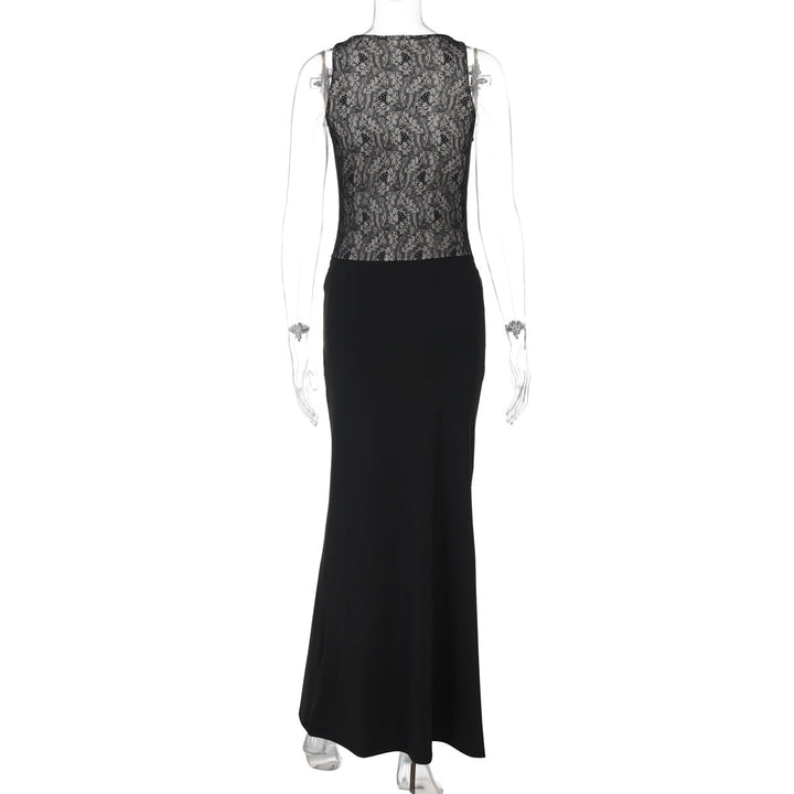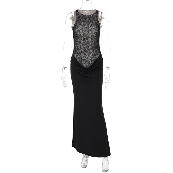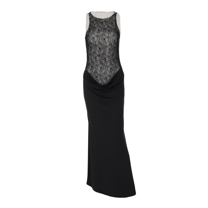 Crewneck lace patchwork ruched maxi dress