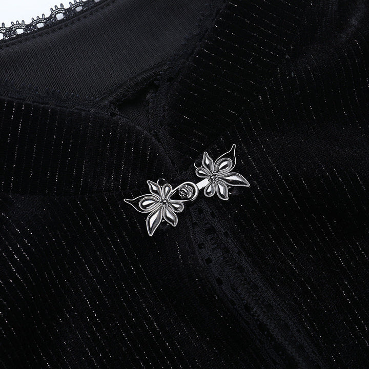Flower embroidery cap sleeve slit maxi dress