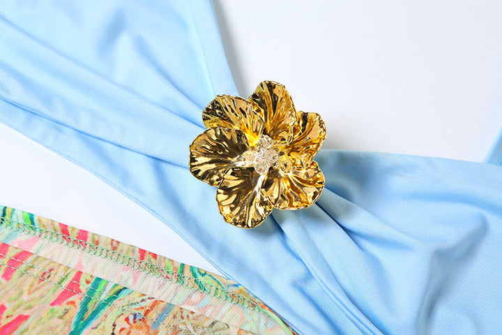 Flower applique hollow out cami maxi dress