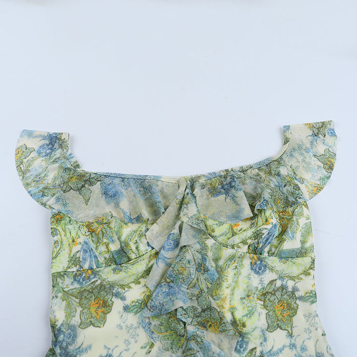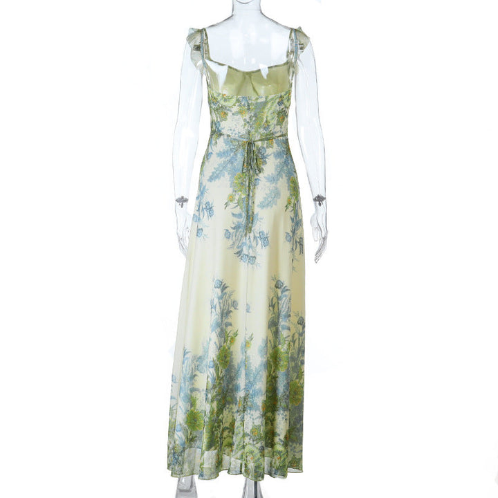 Flower print ruffle cami maxi dress
