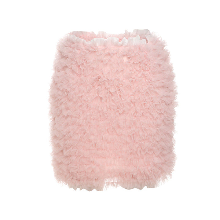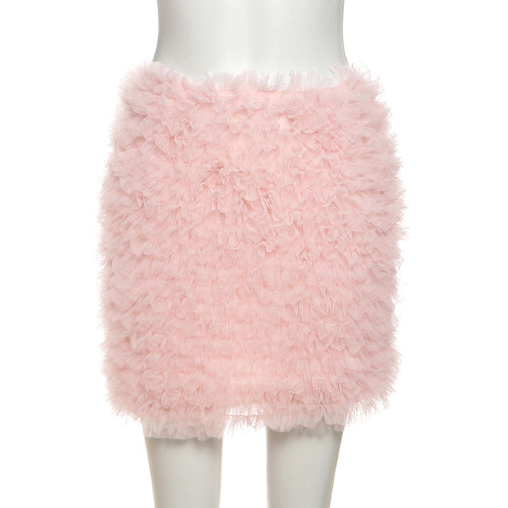 Fluffy ruffle zip-up mini skirt