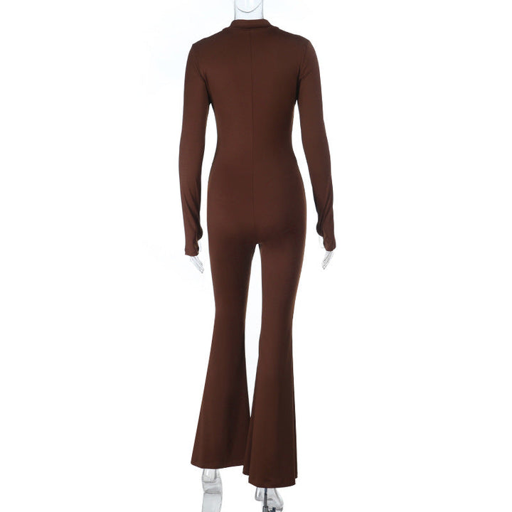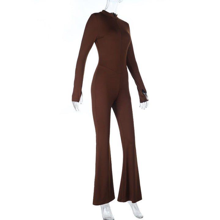 Gloves long sleeve crewneck zip-up solid jumpsuit