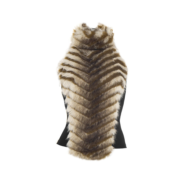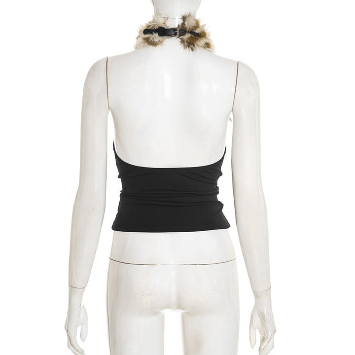 Halter fluffy contrast buckle backless top