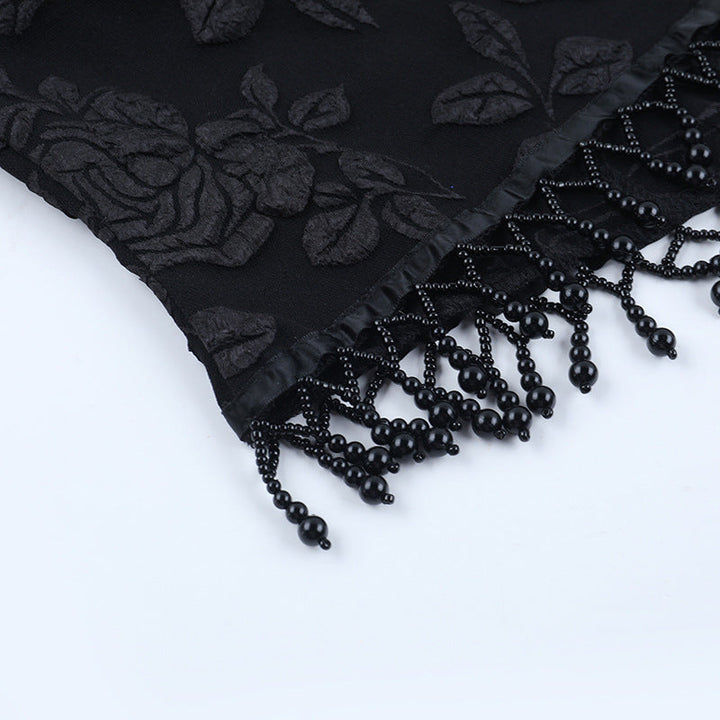 Halter print zip-up beaded backless top