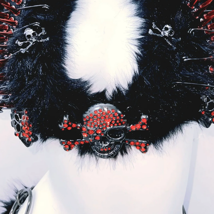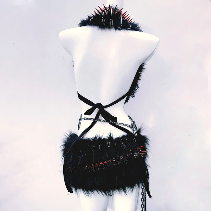 Halter self tie o ring fluffy skull applique mini skirt set