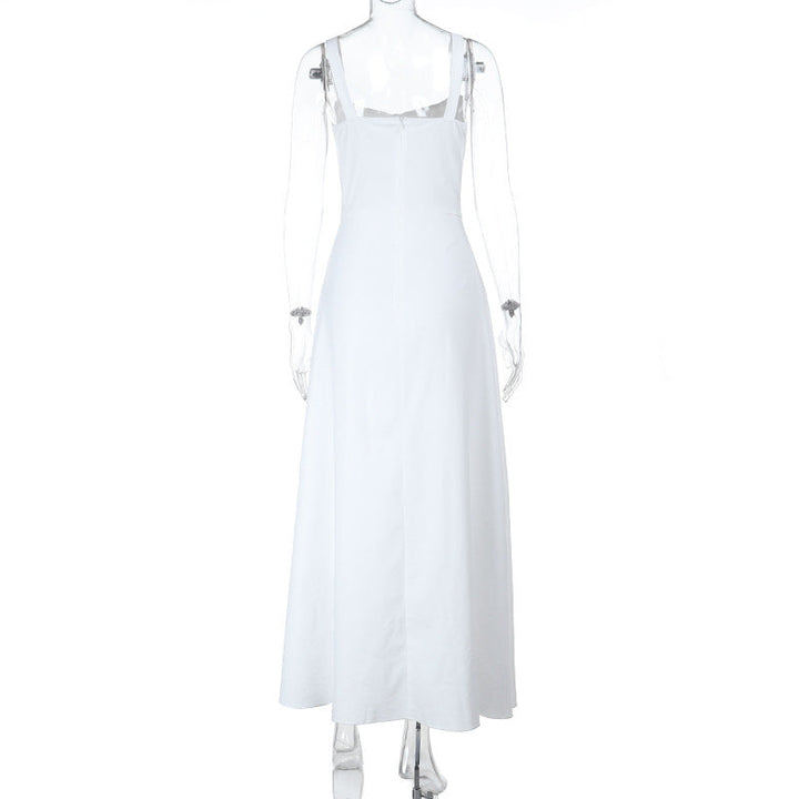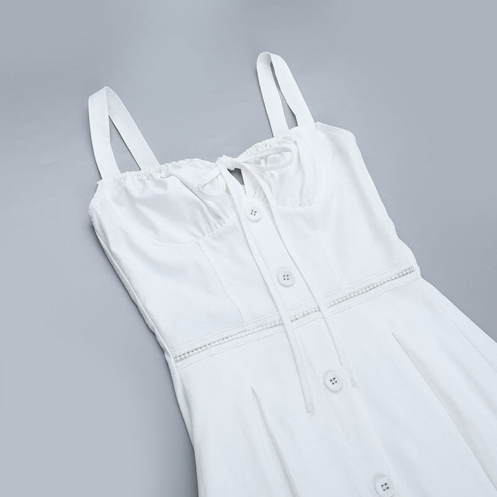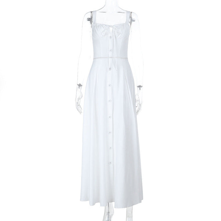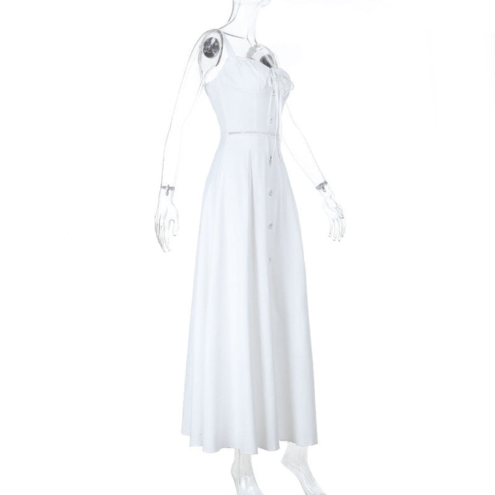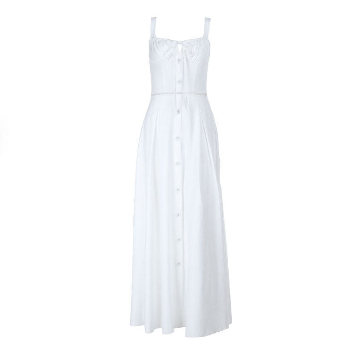 Hollow out button zip-up self tie cami maxi dress