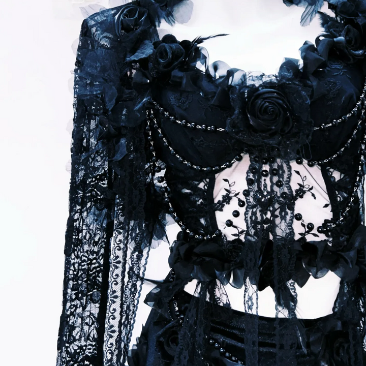 Hollow out long sleeve flower applique lace maxi dress
