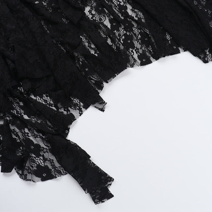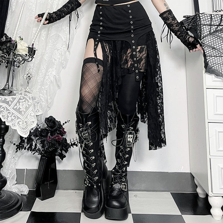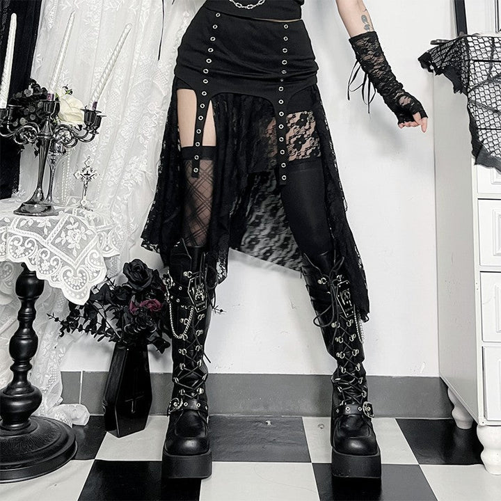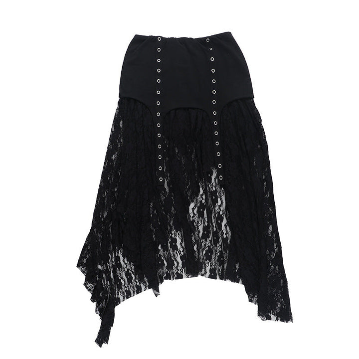 Irregular lace patchwork solid midi skirt