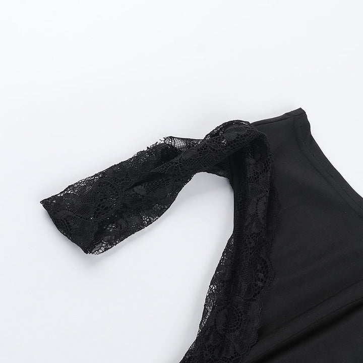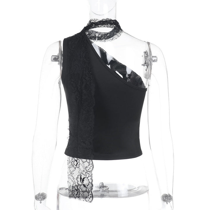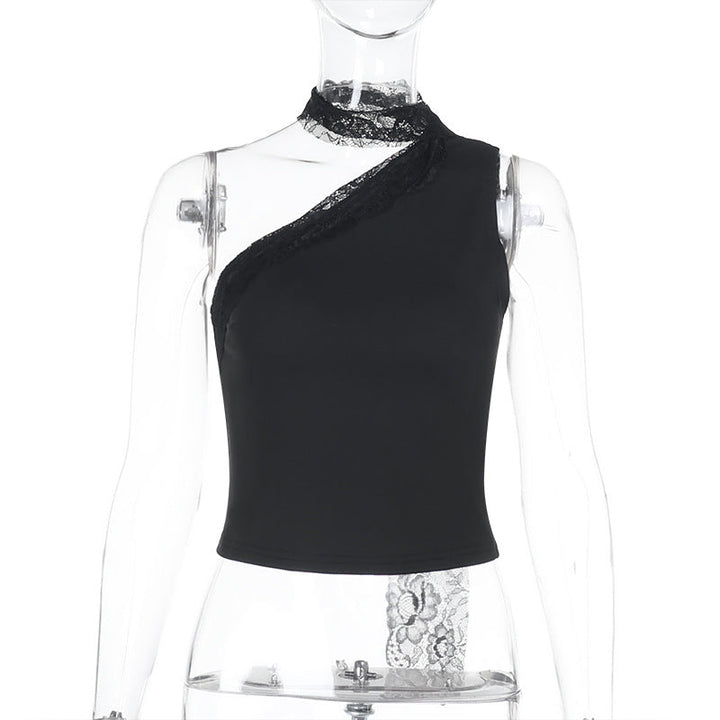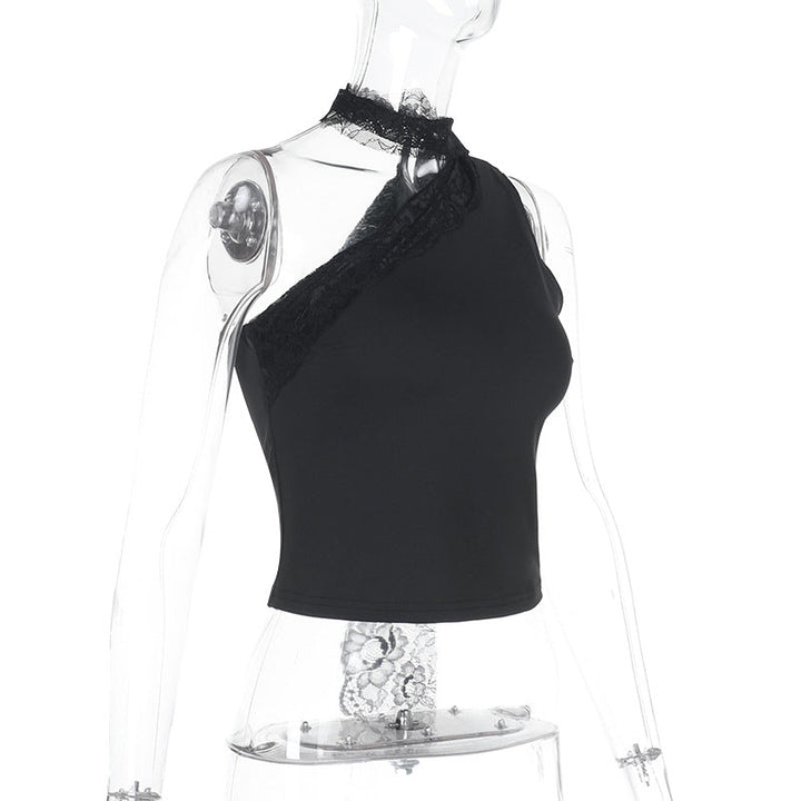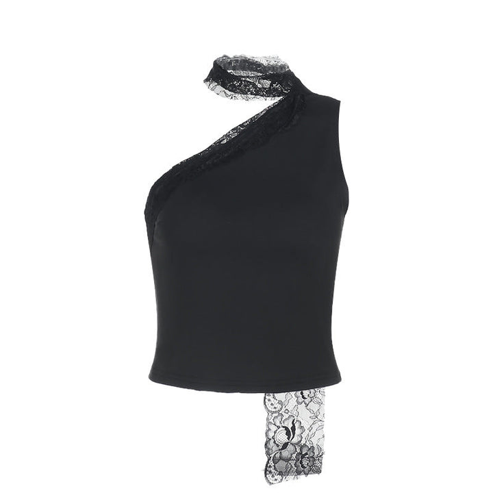 Irregular one shoulder lace solid top