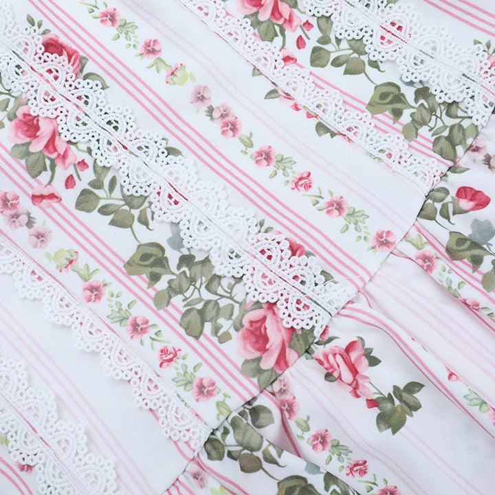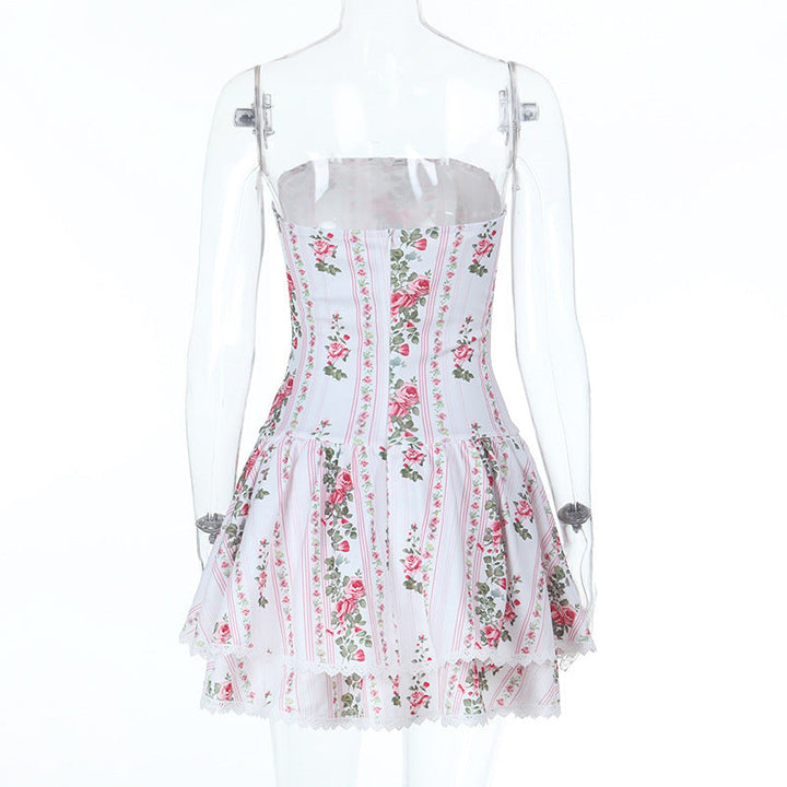 Lace hem flower print zip-up tube mini dress