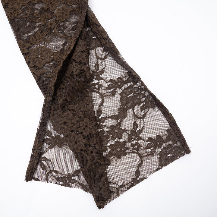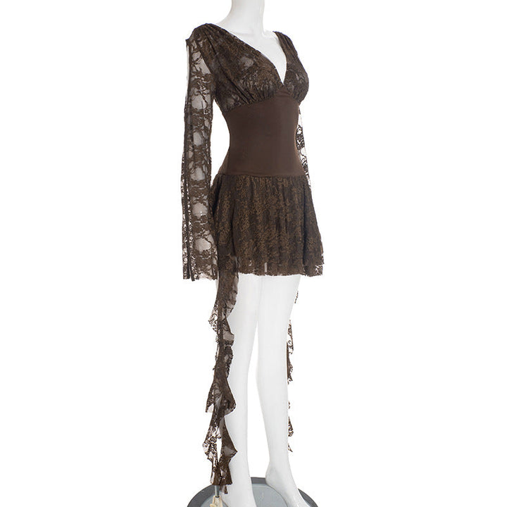 Lace long sleeve v neck hollow out mini dress