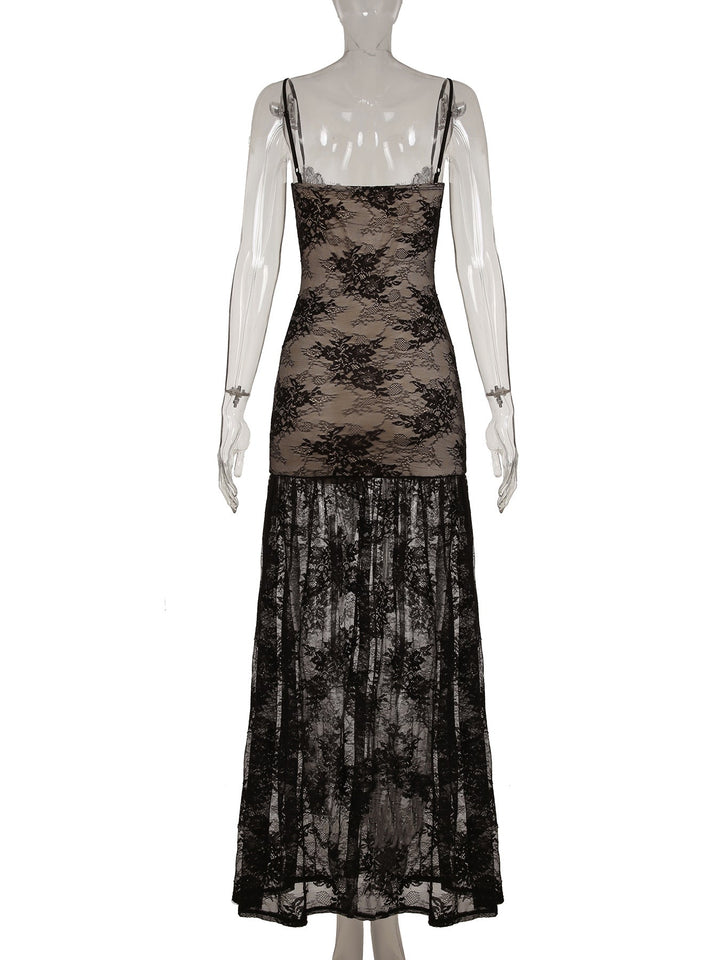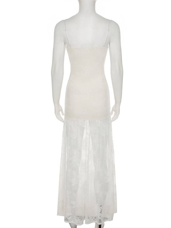 Lace ruched high slit cami maxi dress