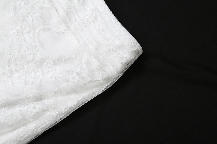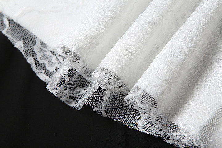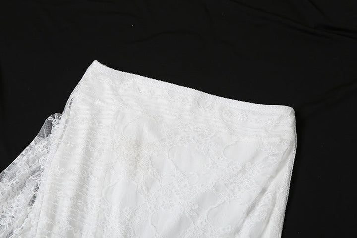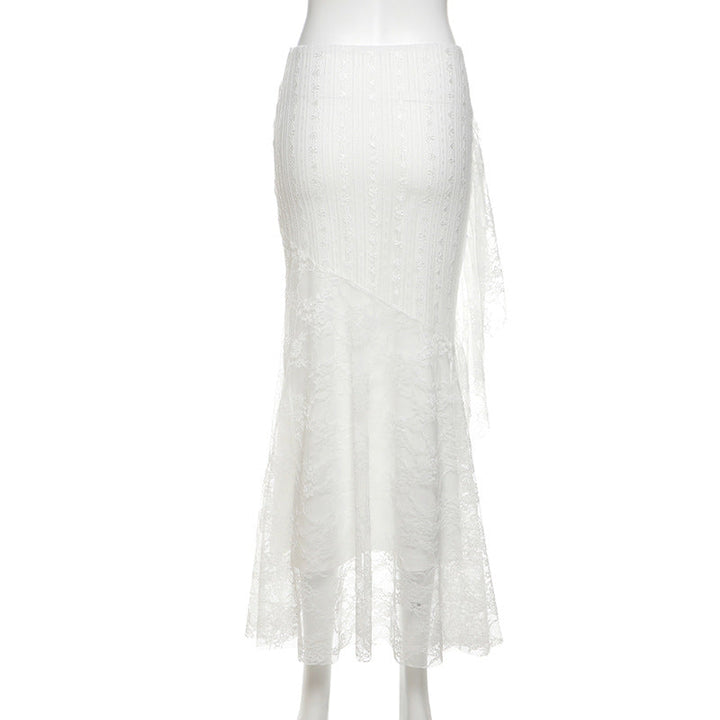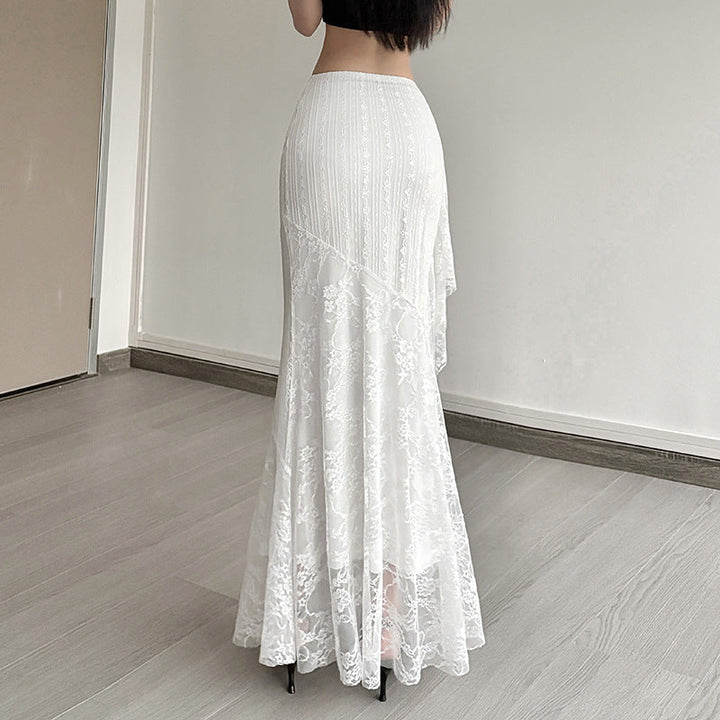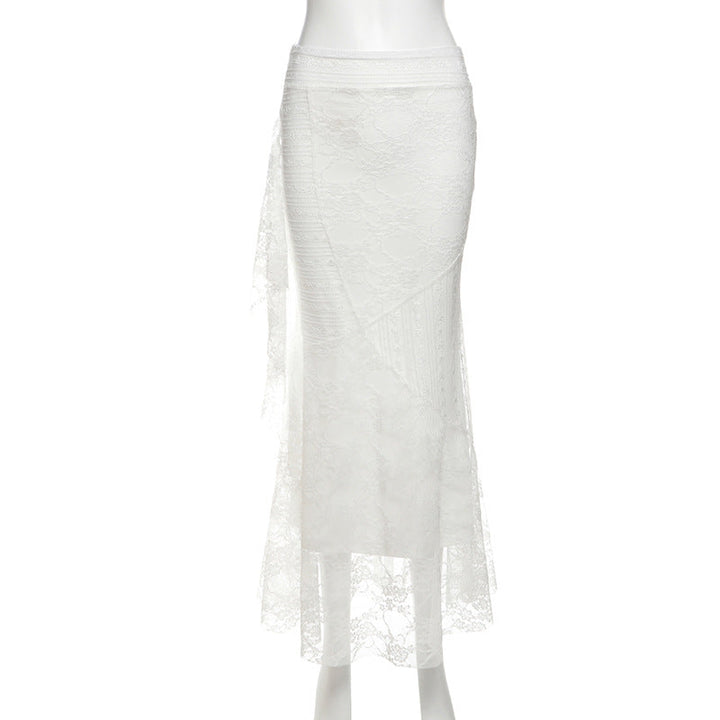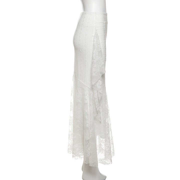 Lace ruffle irregular maxi skirt