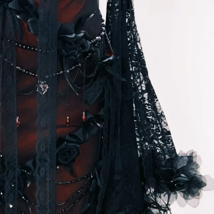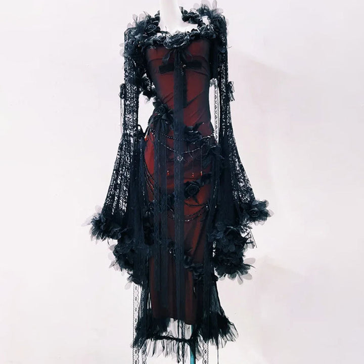 Long flared sleeve flower applique 2 piece maxi dress