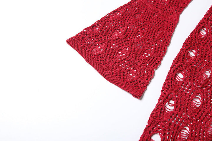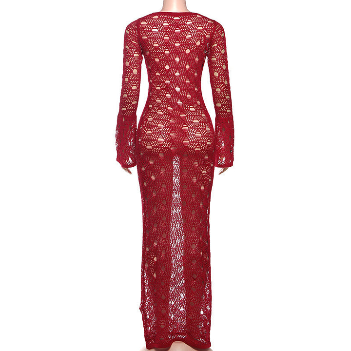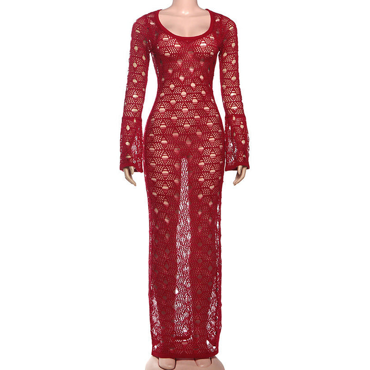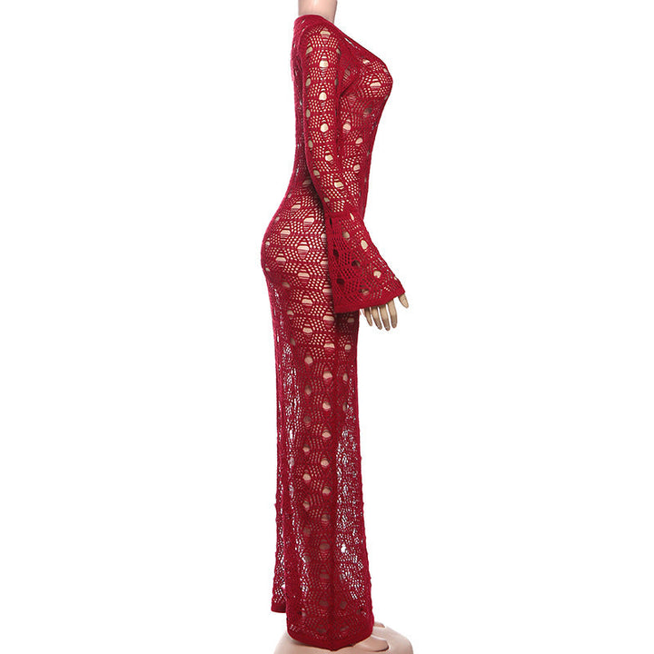 Long flared sleeve hollow out maxi dress