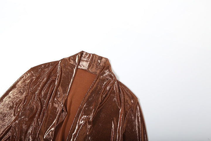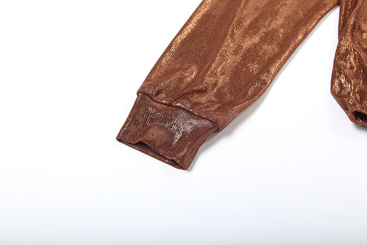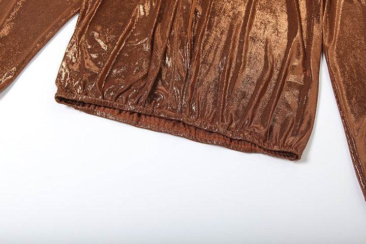 Long sleeve deep v neck metallic mini skirt set