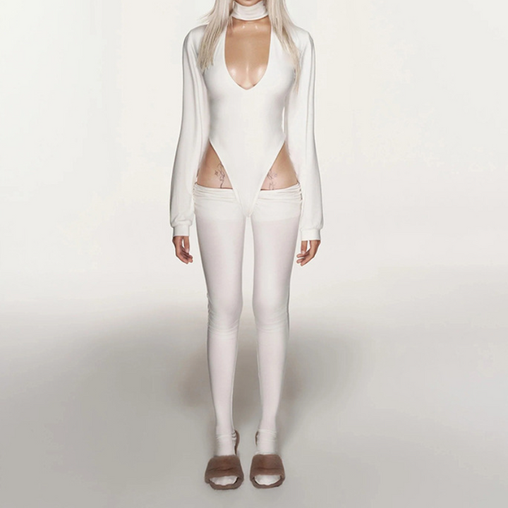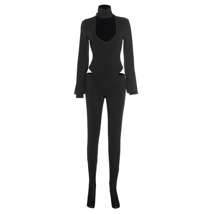 Long sleeve high neck hollow out button pant set