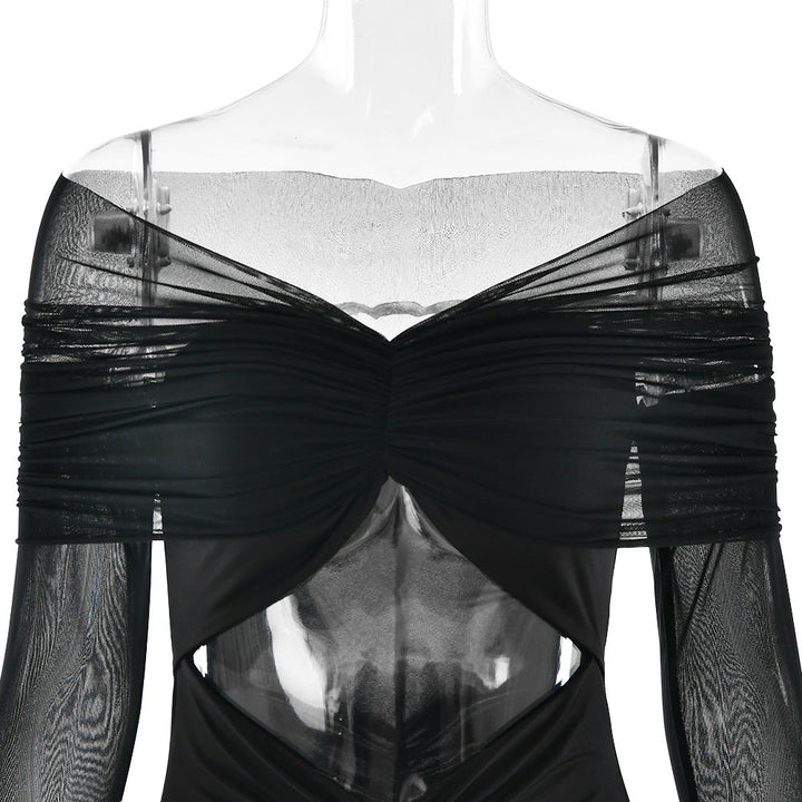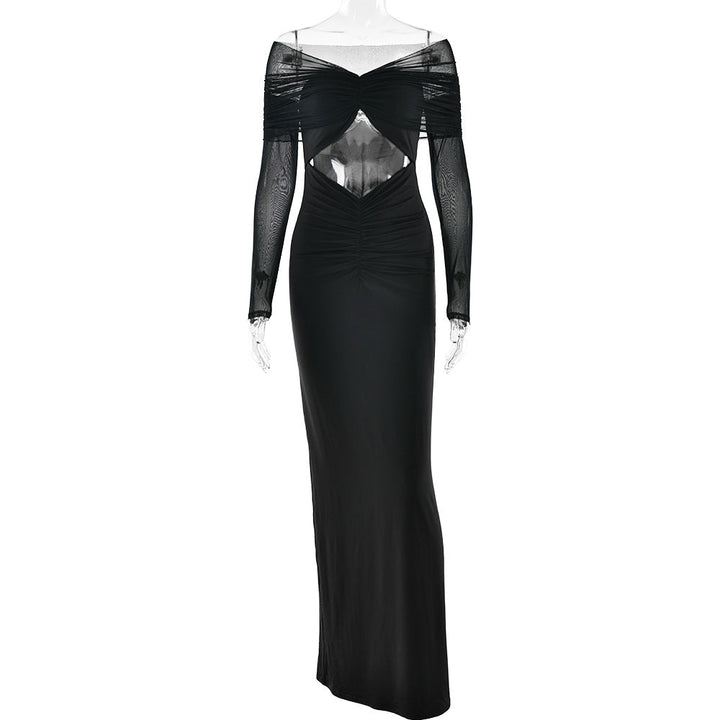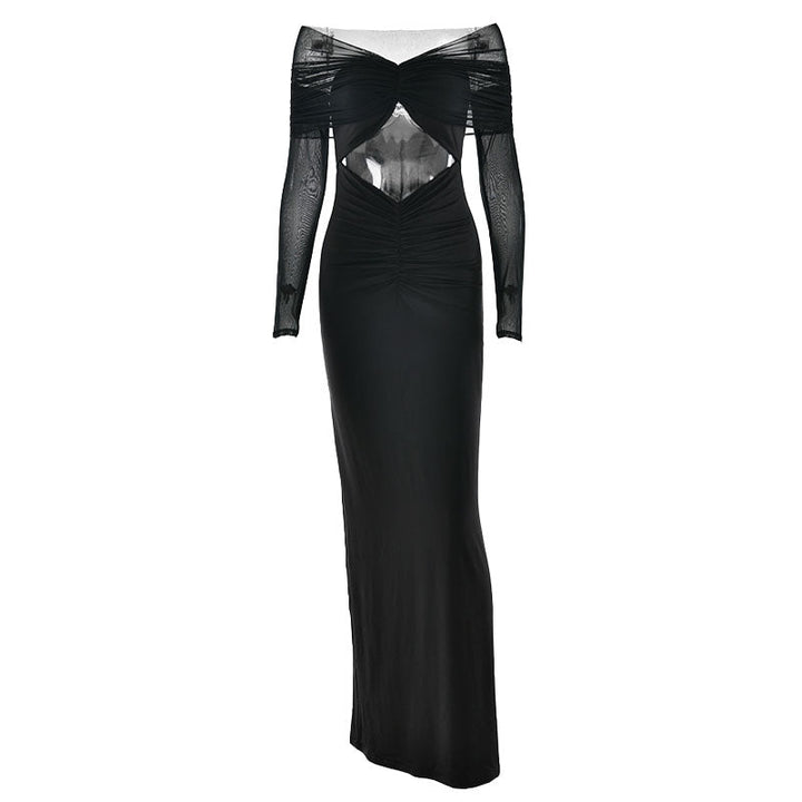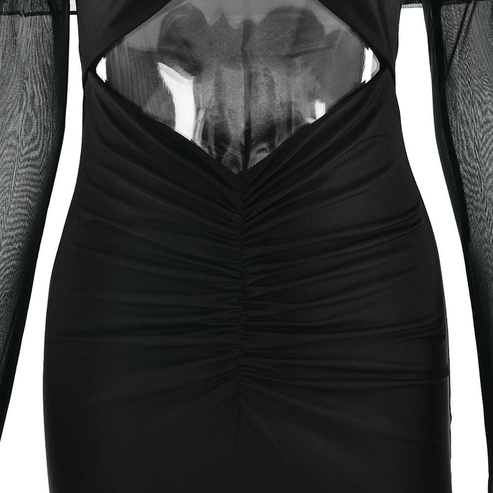 Long sleeve hollow out ruched mesh maxi dress