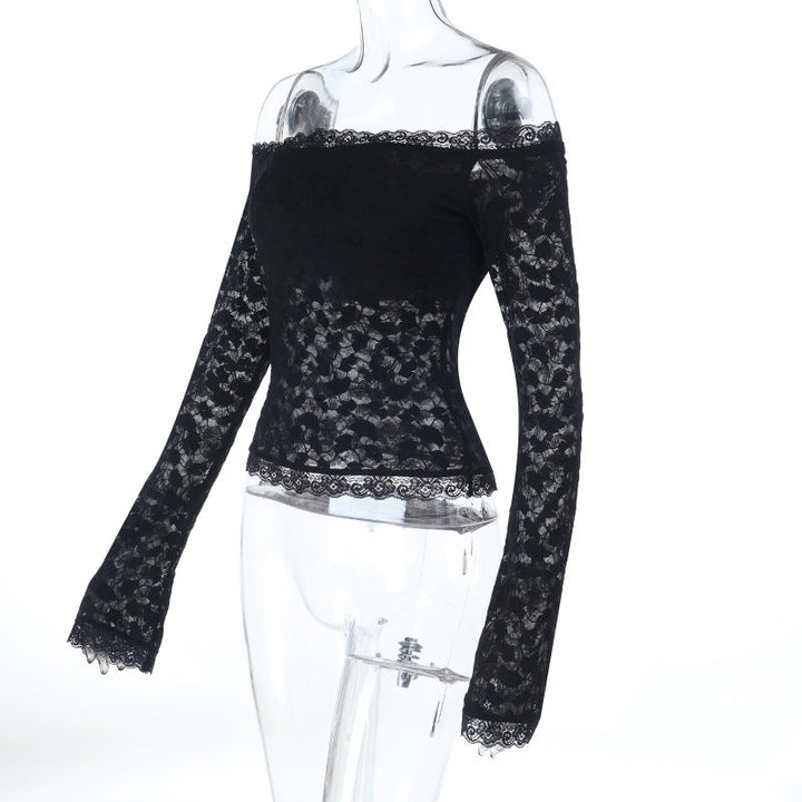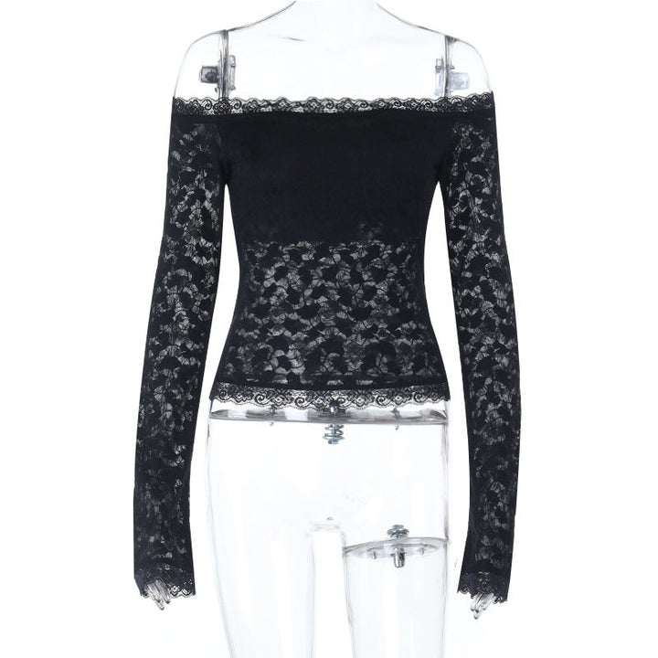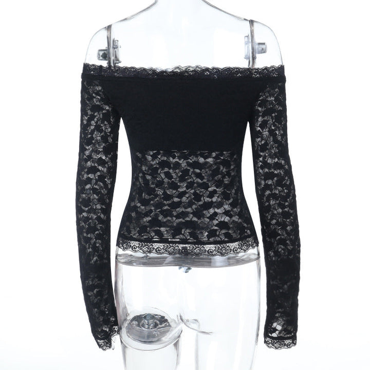 Long sleeve off shoulder lace solid top