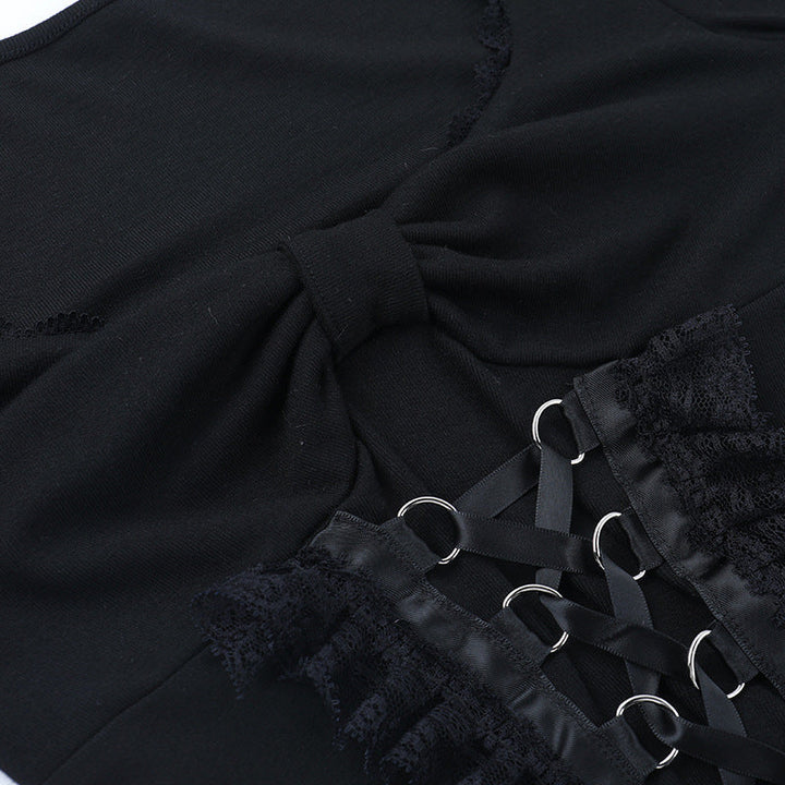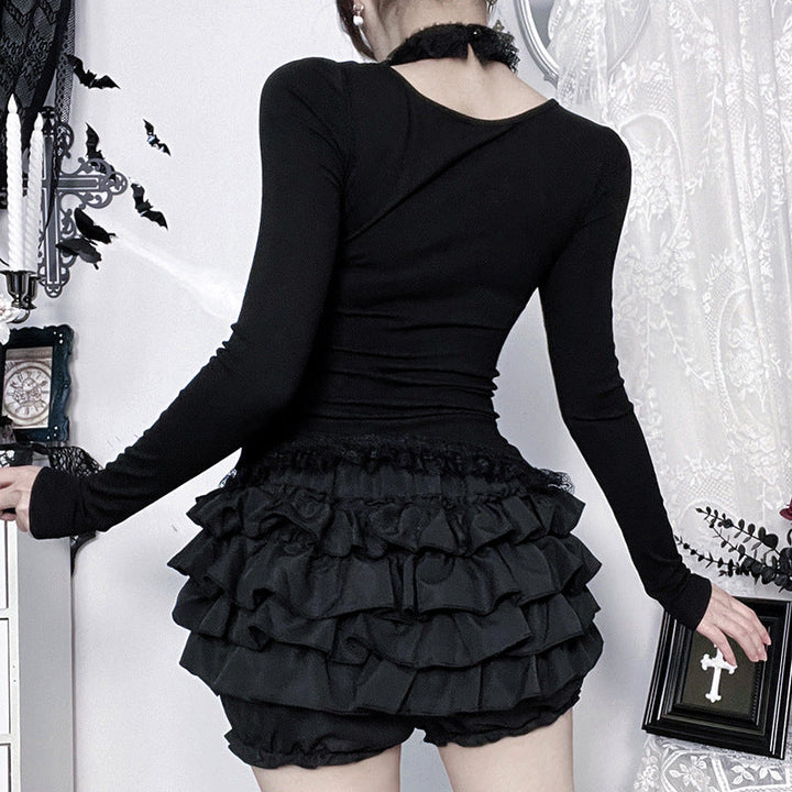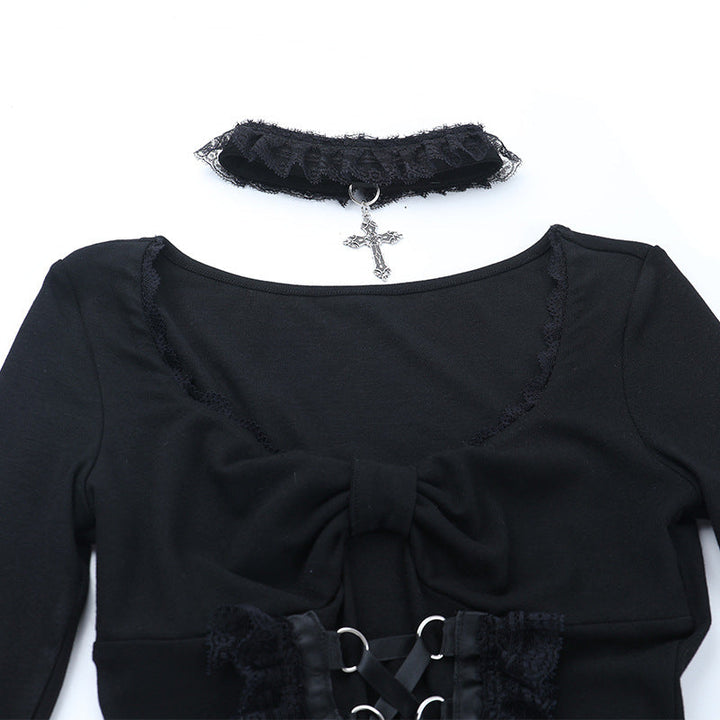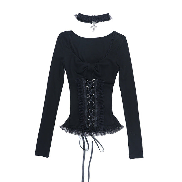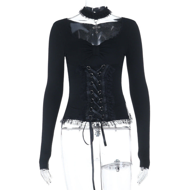 Long sleeve v neck lace hem top