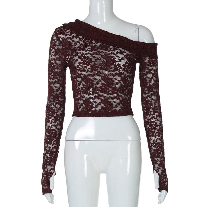 Off shoulder long sleeve lace top