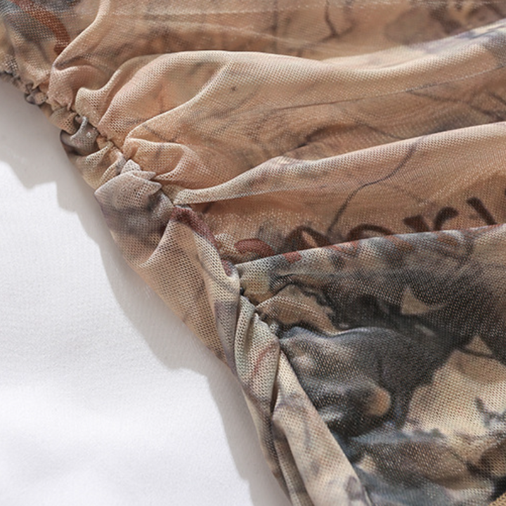 One shoulder irregular ruched ruffle print top