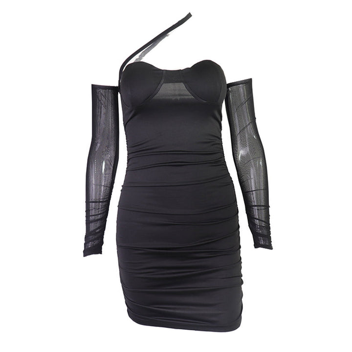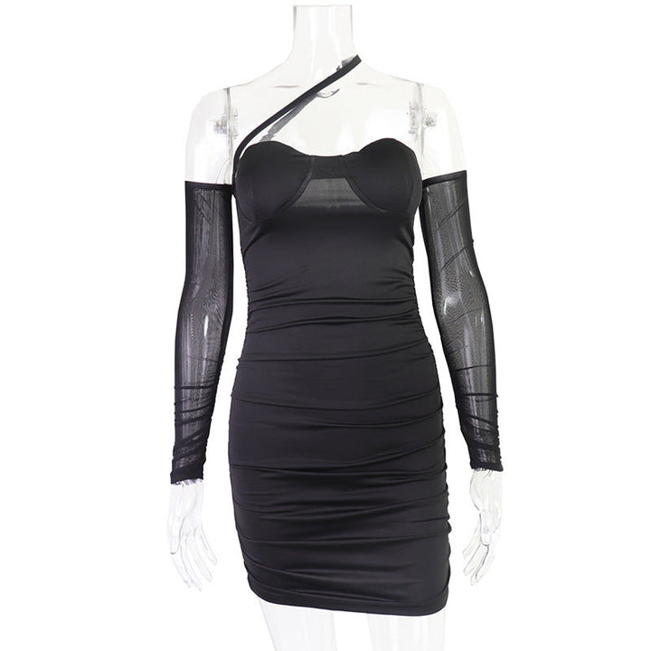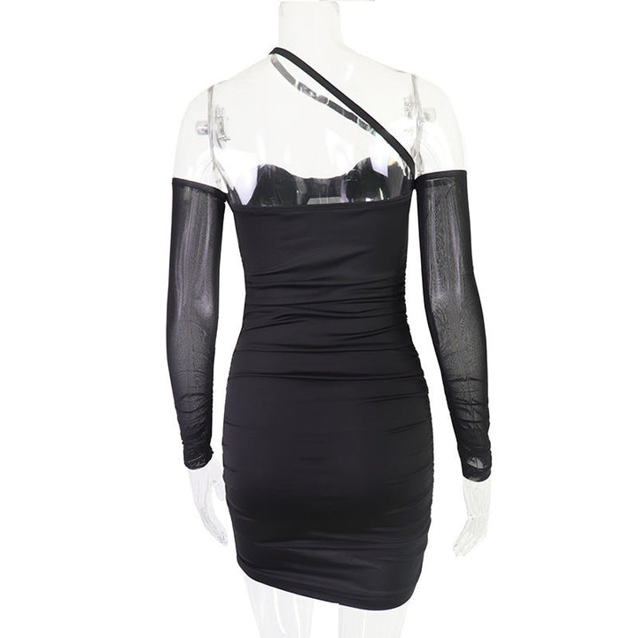 One shoulder mesh ruched mini dress