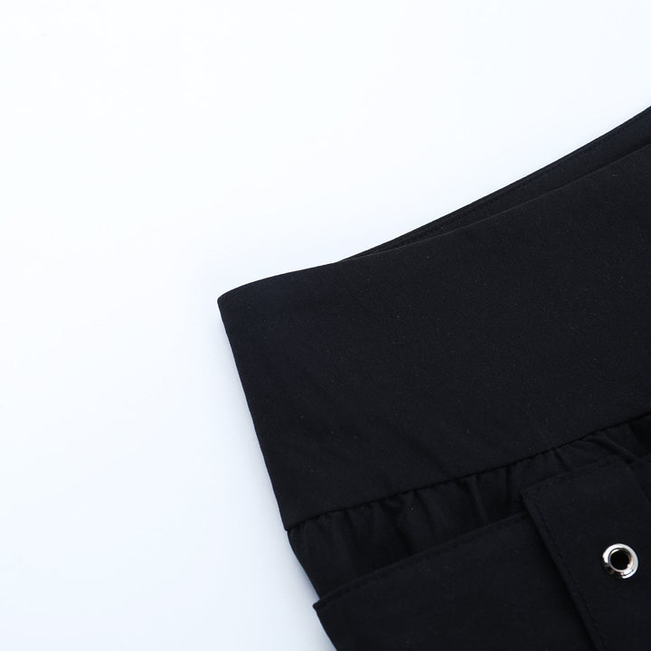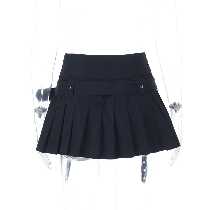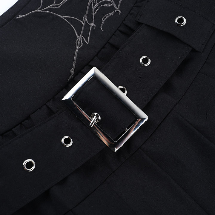Pleated A line belt embroidery mini skirt