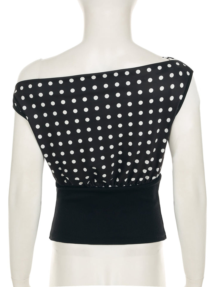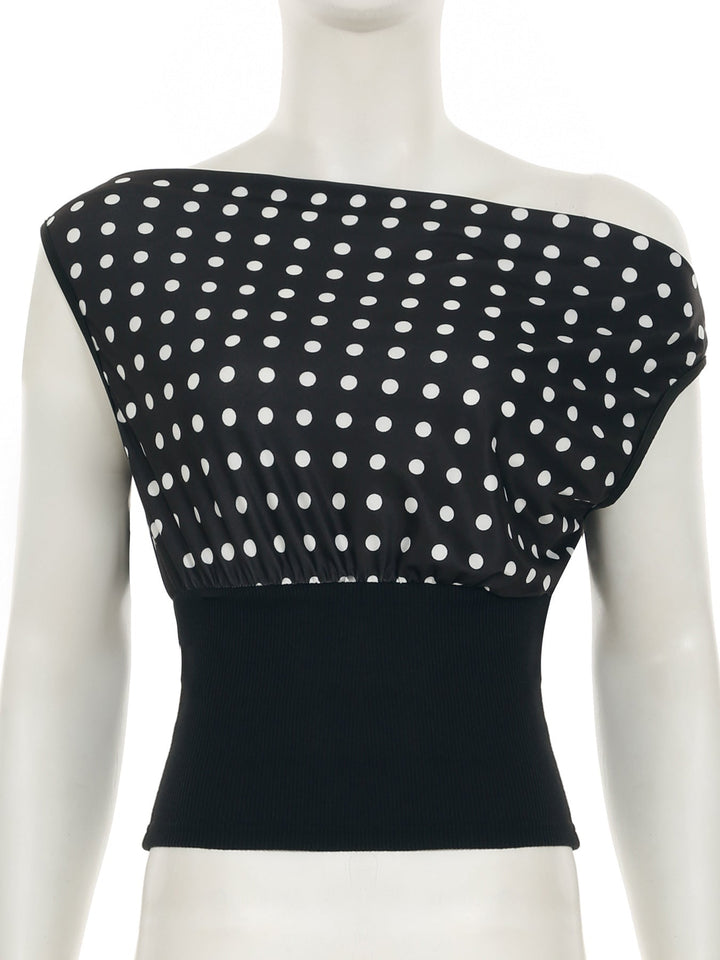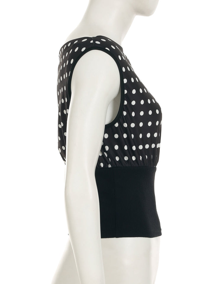 Polka dot irregular ribbed sleeveless top