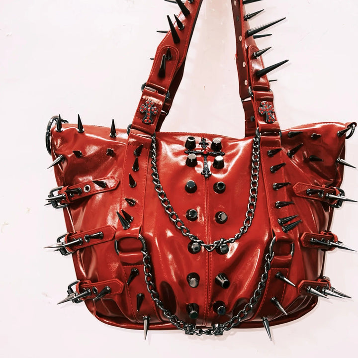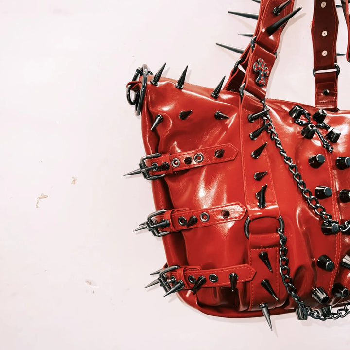 PU leather rivet metal chain handbag