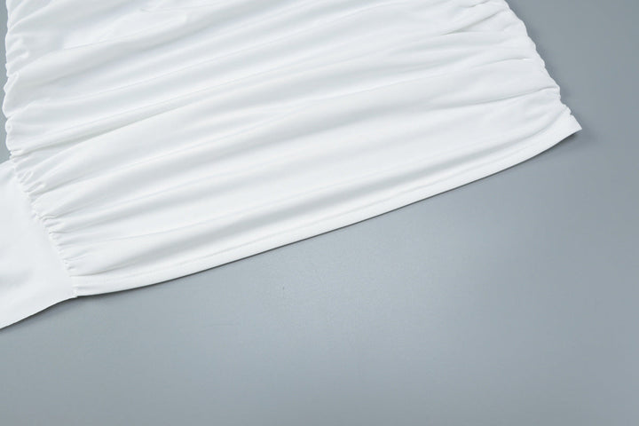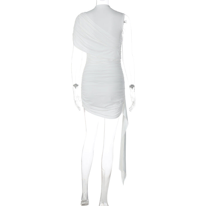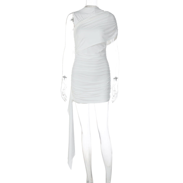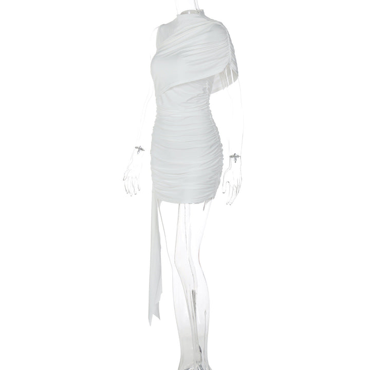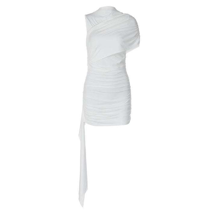 Ruched one shoulder solid high neck mini dress