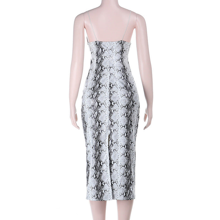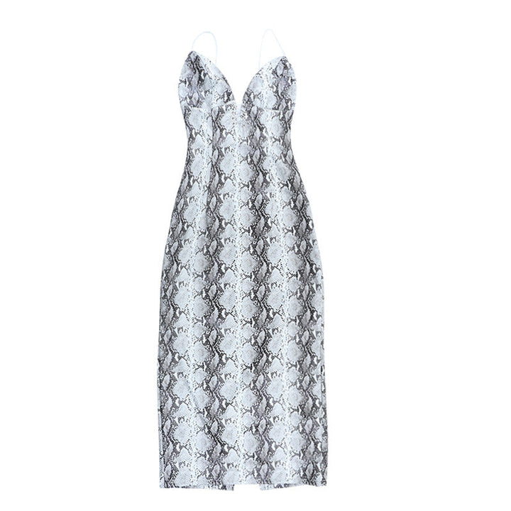 Snakeskin print v neck backless cami maxi dress