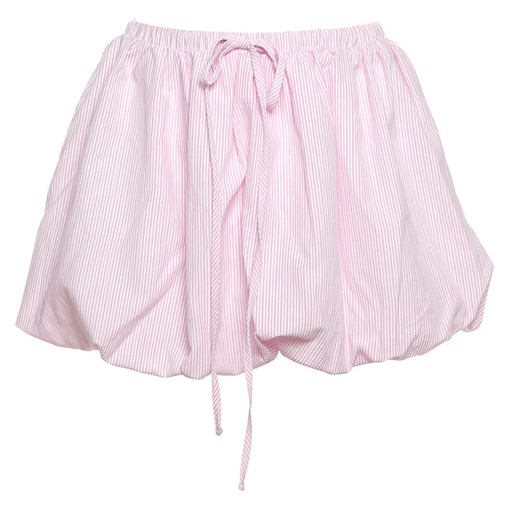 Striped drawstring ruched mini skirt