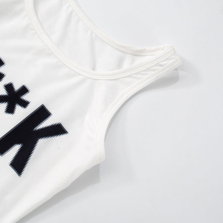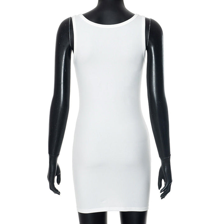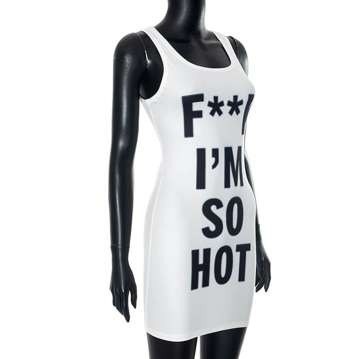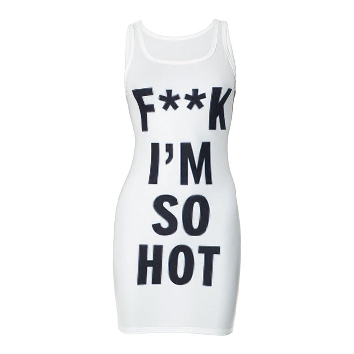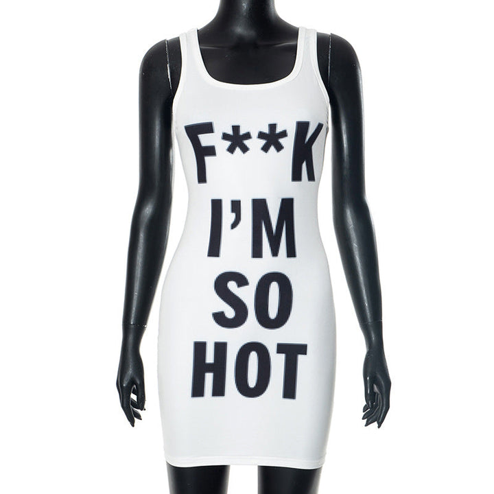 U neck letter print contrast tank mini dress