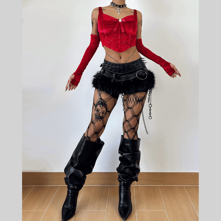 Gloves bowknot lace velvet patchwork cami top