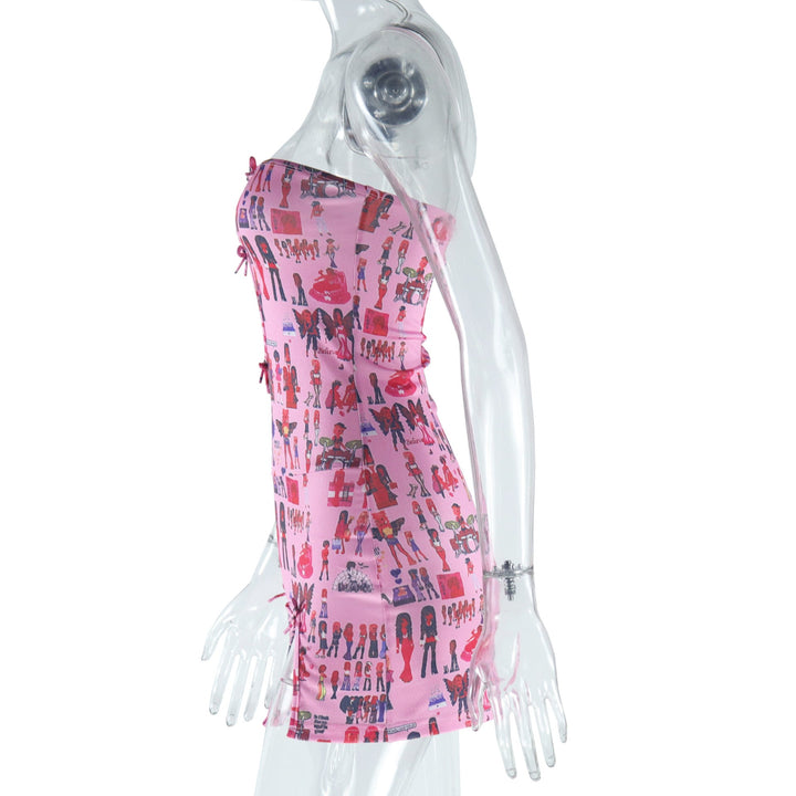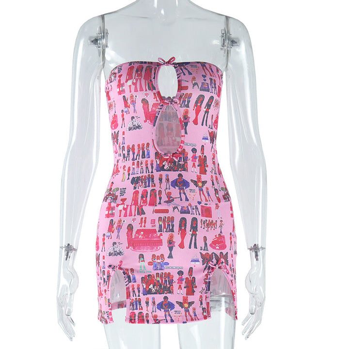 Hollow out bowknot abstract tube mini dress
