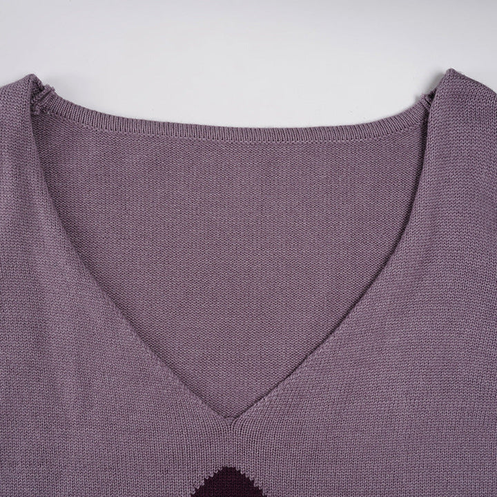 Knitted long sleeve v neck flower pattern top