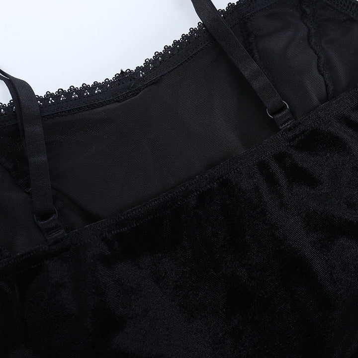 Lace hem u neck self tie backless cami top