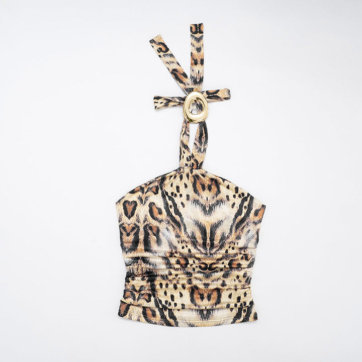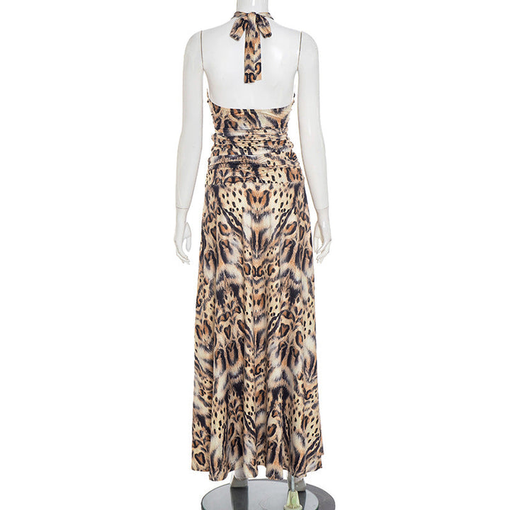 Leopard print halter high slit maxi skirt set