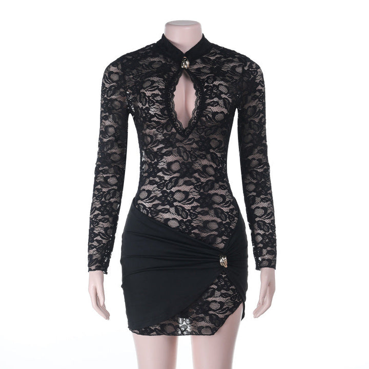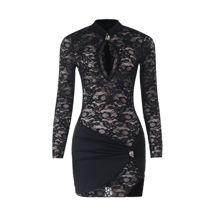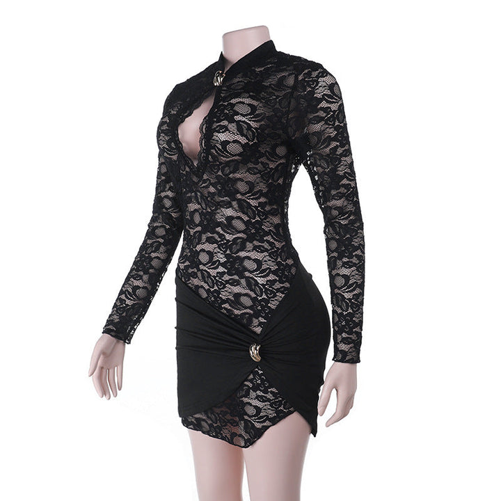 Long sleeve hollow out lace mini dress