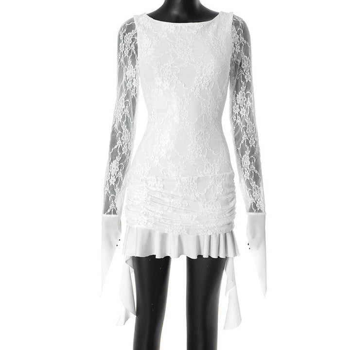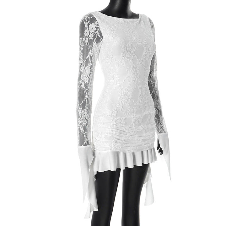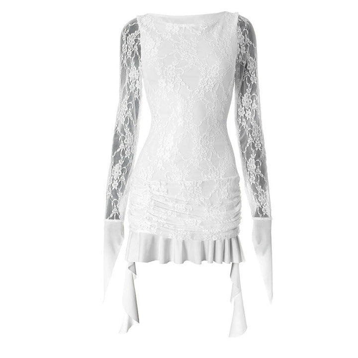 Long sleeve lace ruffle mini dress