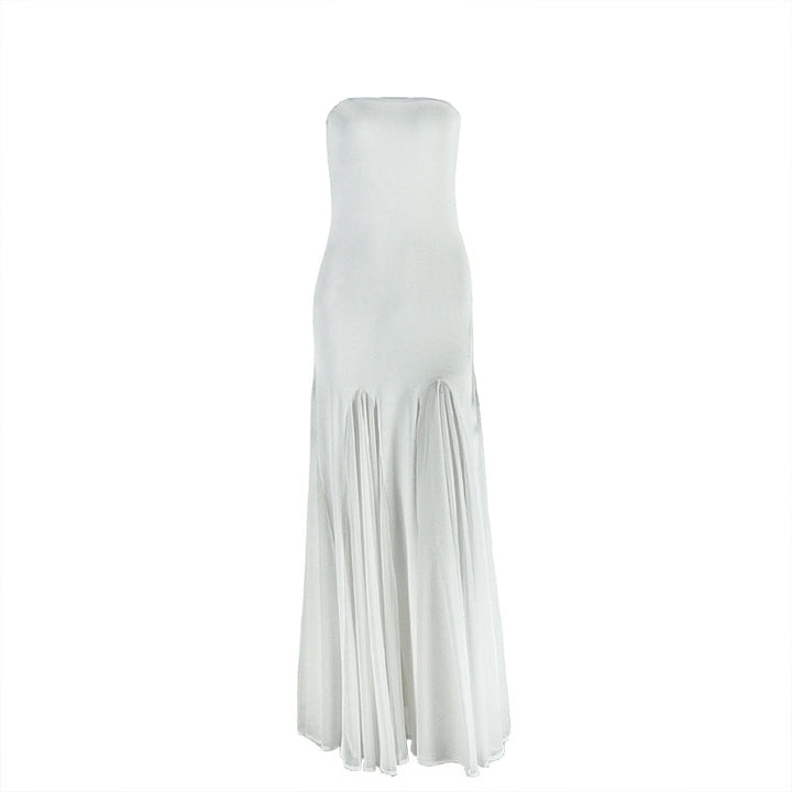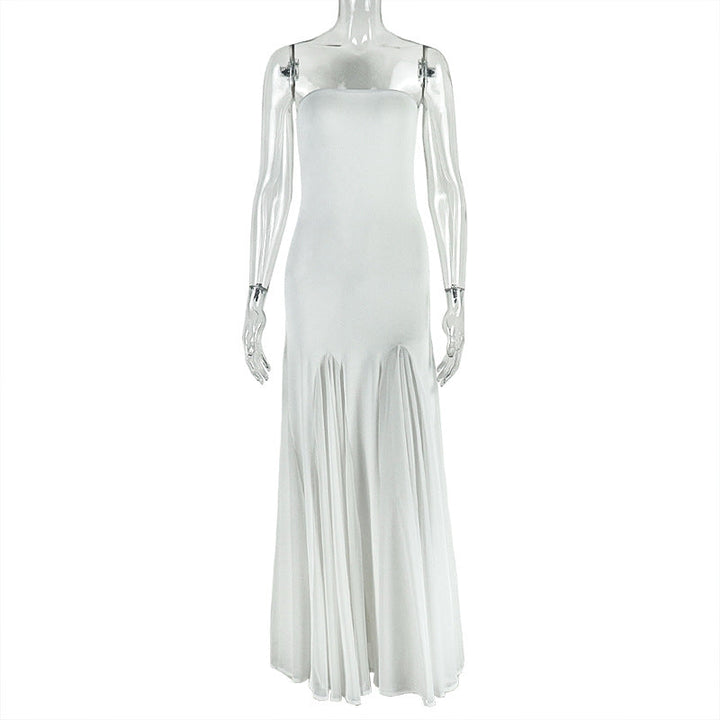 Mesh patchwork solid tube maxi dress