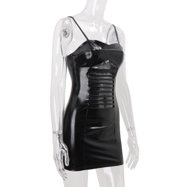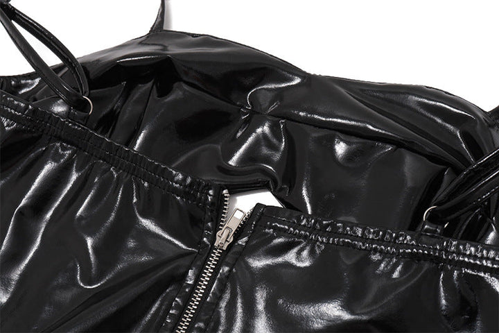 PU leather hollow out zip up cami mini dress