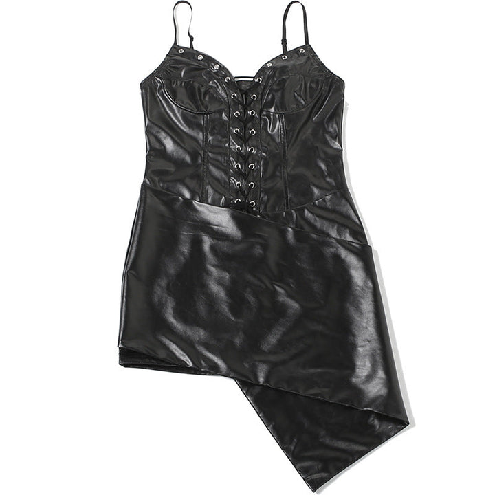 PU leather lace up backless cami mini dress