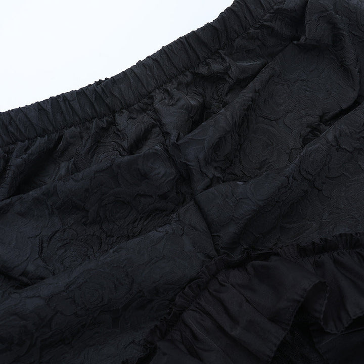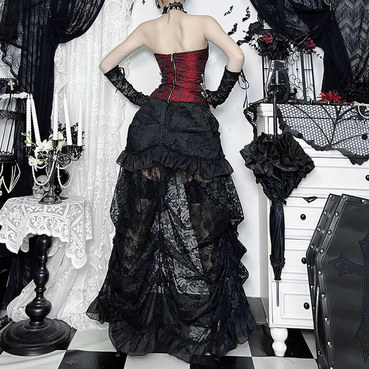 Ruched lace slit solid maxi skirt