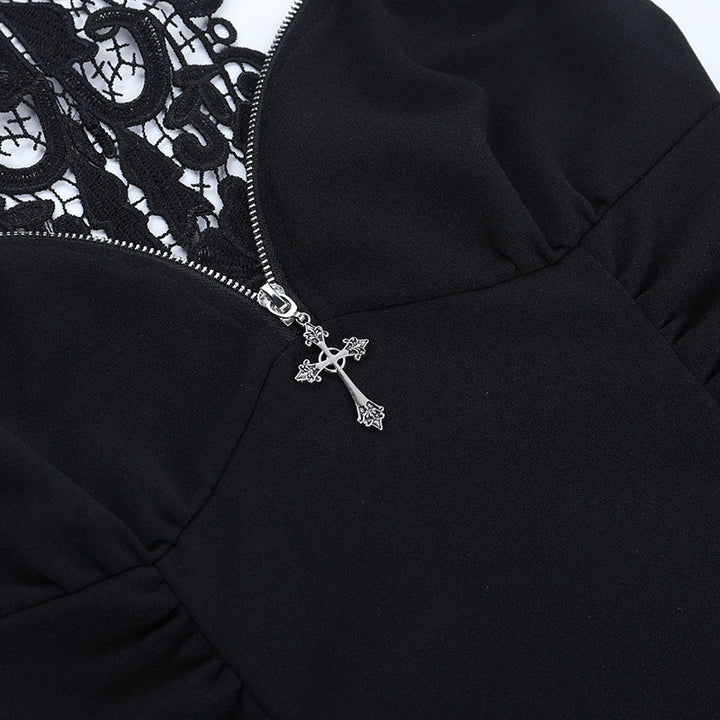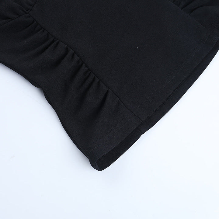 Ruched v neck o ring lace solid top