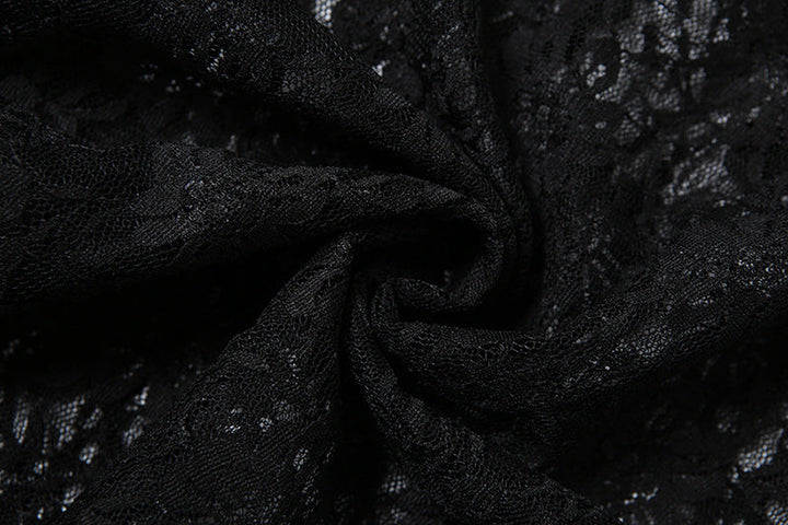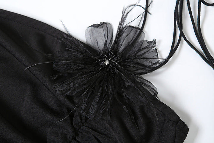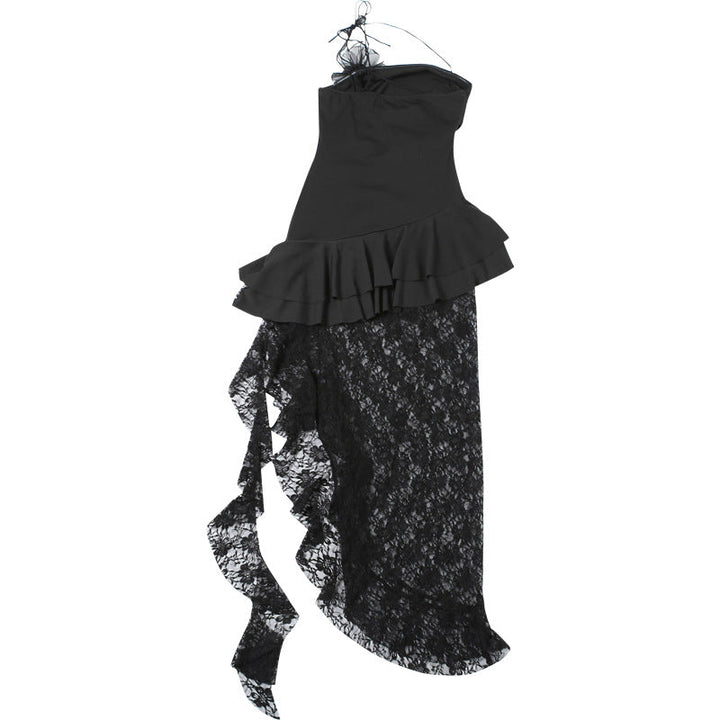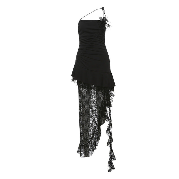 Ruffle lace slit flower applique maxi dress